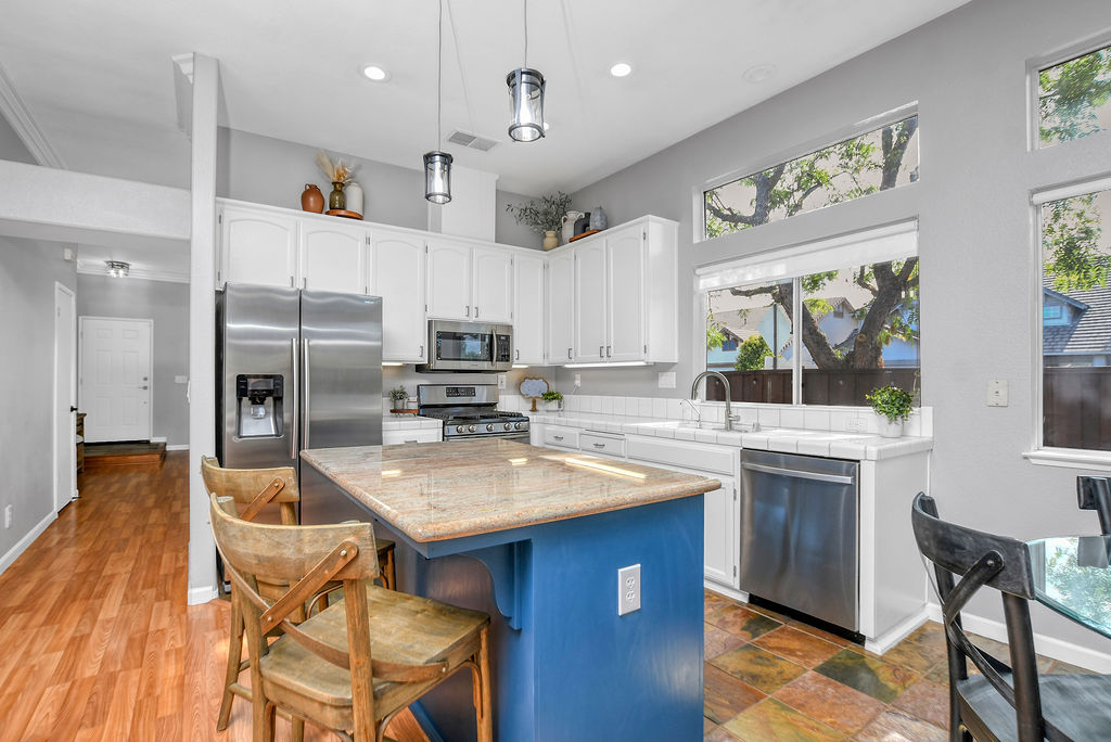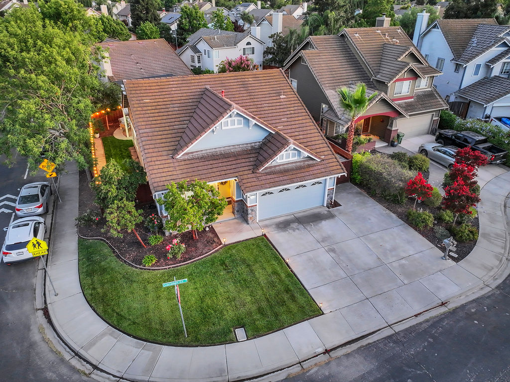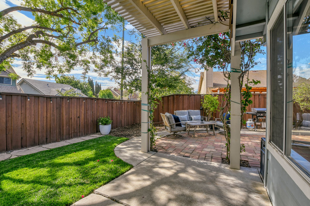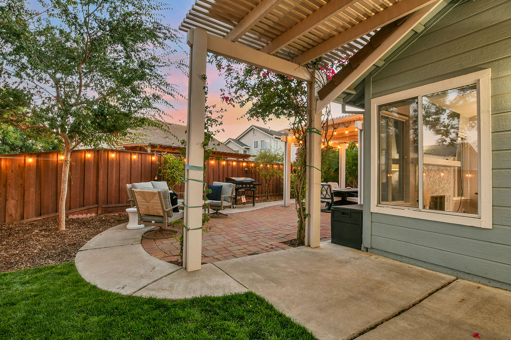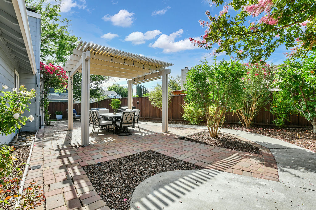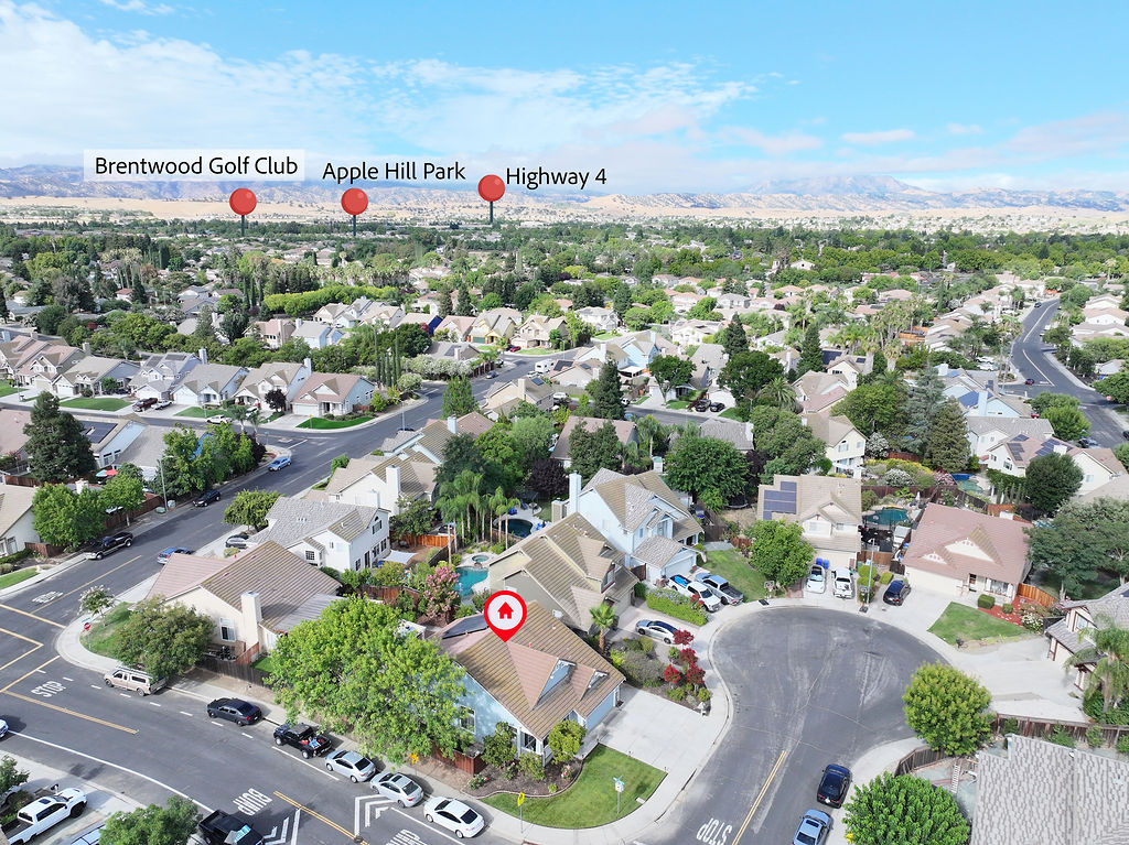 Welcome to this beautifully maintained 3 bedroom, 2 Bathroom home offering 1,558 SqFt of comfortable living space in the heart of Brentwood. Perfectly situated on a corner lot at the end of a quiet court, this home combines function, style, and location. Step into a spacious living and dining area featuring warm wood laminate flooring, elegant crown molding, and an abundance of natural light from the surrounding windows. The open-concept kitchen and family room create a cozy space for everyday living and entertaining. The kitchen boasts a granite topped island with pendant lighting, stainless steel appliances, a gas cooktop, and a charming dining nook ideal for enjoying your morning coffee or evening meals. The family room continues the wood laminate flooring and includes a ceiling fan and fireplace for added comfort. The Spacious primary bedroom has an updated bathroom with Piedrafina countertops, dual sinks, glass bead backsplash, and a spacious walk-in shower finished with Piedrafina and slate accents. Step outside to your private backyard oasis complete with a lovely arbor, lush landscaping, and fruit trees, perfect for relaxing or entertaining. All this and within walking distance to trails, parks and Bristow Middle School.
