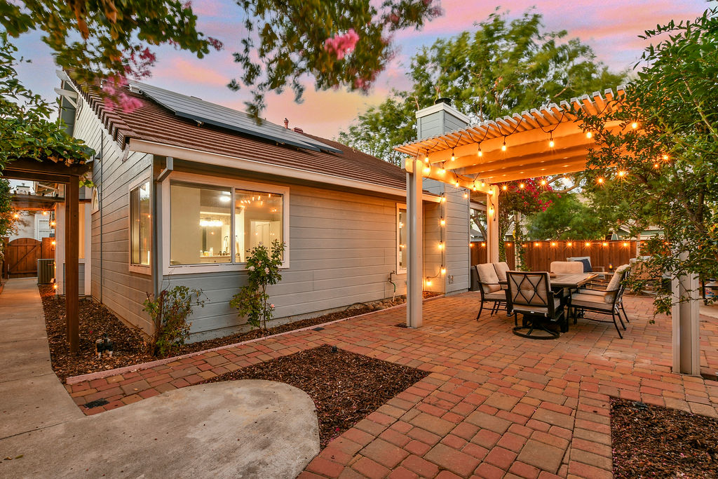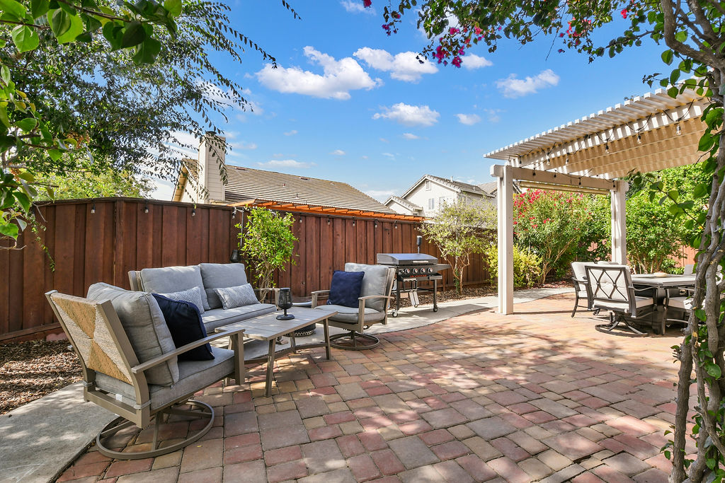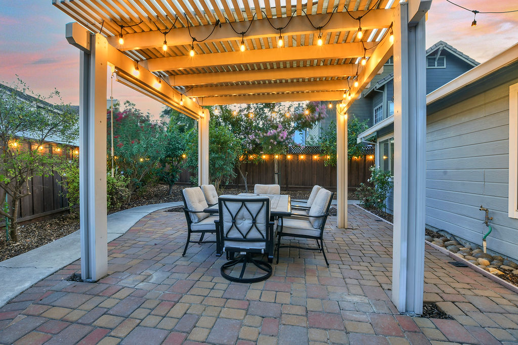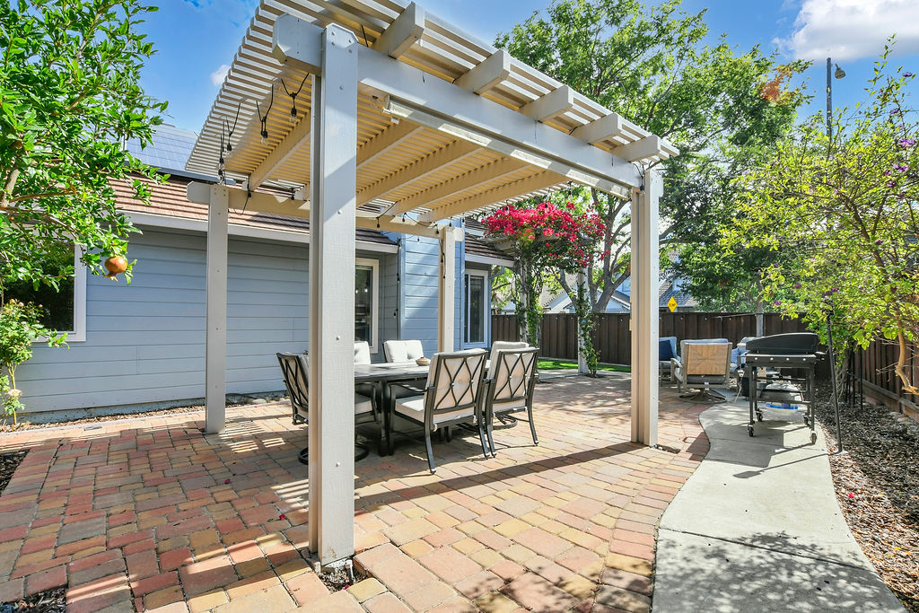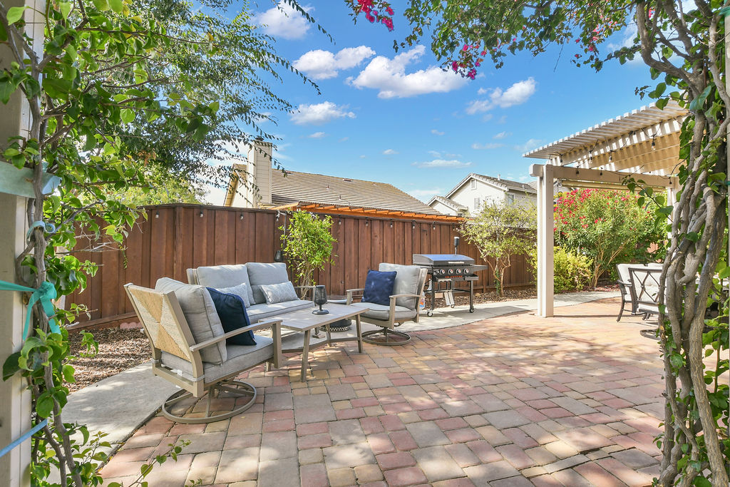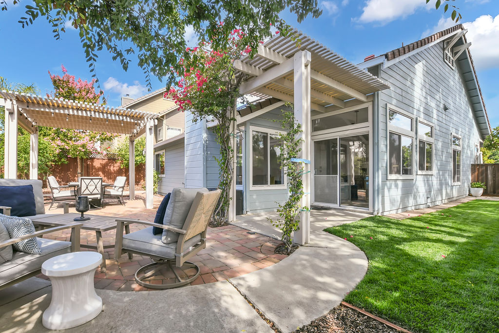 Welcome to this beautifully maintained 3 bedroom, 2 Bathroom home offering 1,558 SqFt of comfortable living space in the heart of Brentwood. Perfectly situated on a corner lot at the end of a quiet court, this home combines function, style, and location. Step into a spacious living and dining area featuring warm wood laminate flooring, elegant crown molding, and an abundance of natural light from the surrounding windows. The open-concept kitchen and family room create a cozy space for everyday living and entertaining. The kitchen boasts a granite topped island with pendant lighting, stainless steel appliances, a gas cooktop, and a charming dining nook ideal for enjoying your morning coffee or evening meals. The family room continues the wood laminate flooring and includes a ceiling fan and fireplace for added comfort. The Spacious primary bedroom has an updated bathroom with Piedrafina countertops, dual sinks, glass bead backsplash, and a spacious walk-in shower finished with Piedrafina and slate accents. Step outside to your private backyard oasis complete with a lovely arbor, lush landscaping, and fruit trees, perfect for relaxing or entertaining. All this and within walking distance to trails, parks and Bristow Middle School.