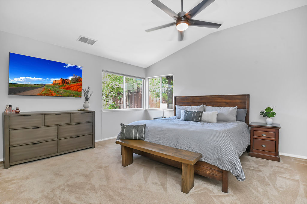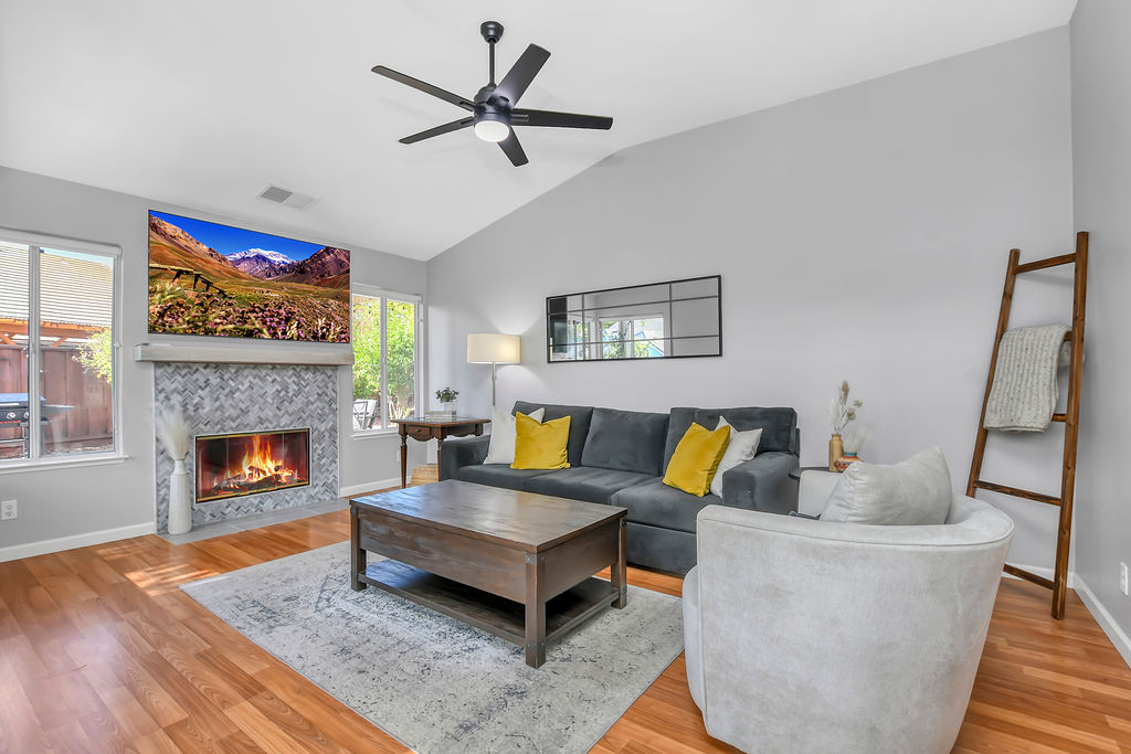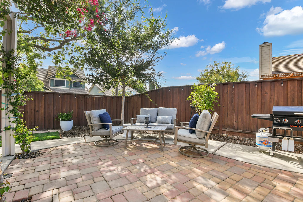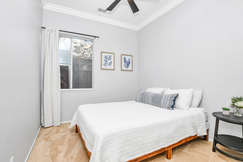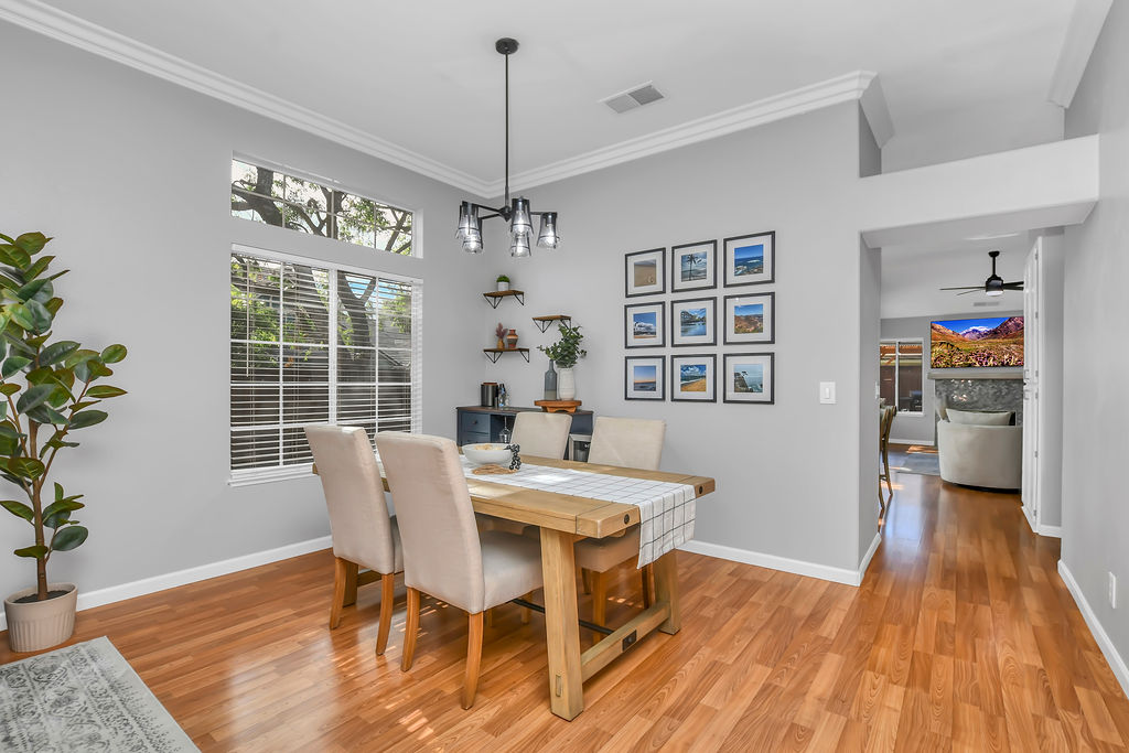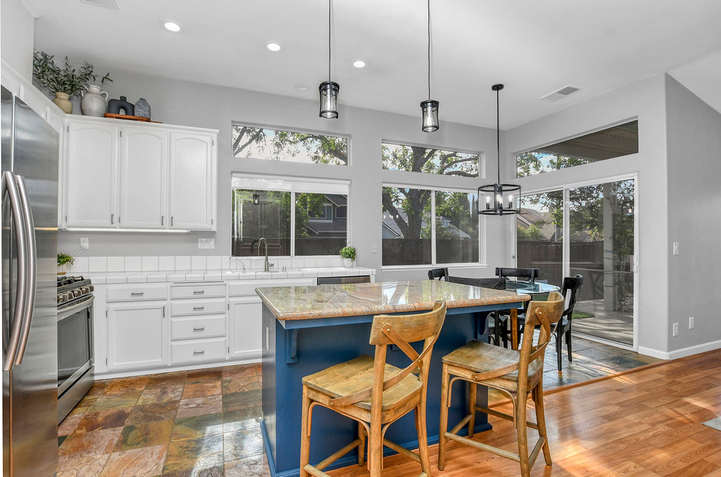 Welcome to this beautifully maintained 3 bedroom, 2 Bathroom home offering 1,558 SqFt of comfortable living space in the heart of Brentwood. Perfectly situated on a corner lot at the end of a quiet court, this home combines function, style, and location. Step into a spacious living and dining area featuring warm wood laminate flooring, elegant crown molding, and an abundance of natural light from the surrounding windows. The open-concept kitchen and family room create a cozy space for everyday living and entertaining. The kitchen boasts a granite topped island with pendant lighting, stainless steel appliances, a gas cooktop, and a charming dining nook ideal for enjoying your morning coffee or evening meals. The family room continues the wood laminate flooring and includes a ceiling fan and fireplace for added comfort. The Spacious primary bedroom has an updated bathroom with Piedrafina countertops, dual sinks, glass bead backsplash, and a spacious walk-in shower finished with Piedrafina and slate accents. Step outside to your private backyard oasis complete with a lovely arbor, lush landscaping, and fruit trees, perfect for relaxing or entertaining. All this and within walking distance to trails, parks and Bristow Middle School.